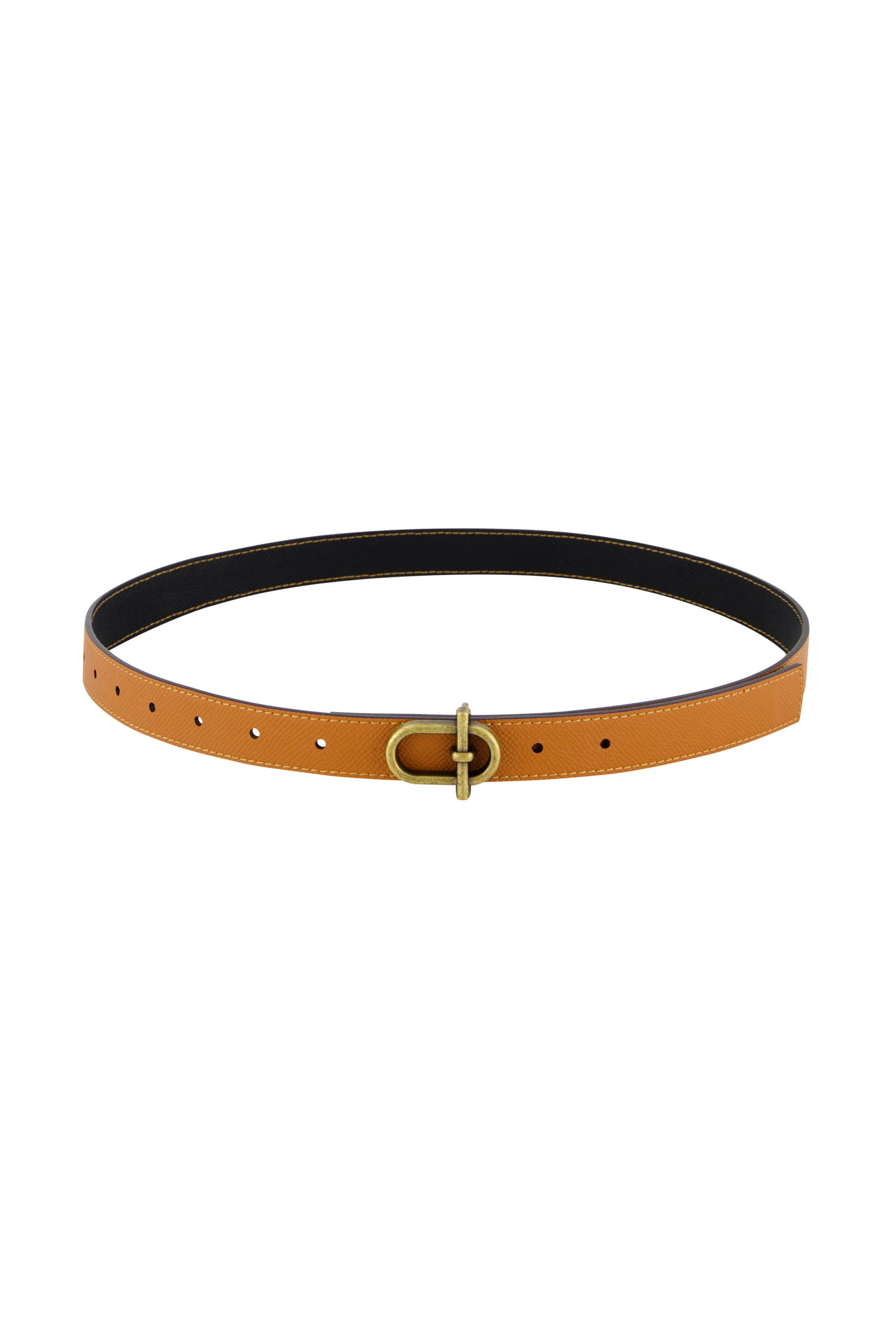 High-quality genuine leather belt. This reversible belt features a versatile Black/Brown design. Complete with a sleek, brass-colored buckle, this accessory effortlessly fits all sizes from S to XL.