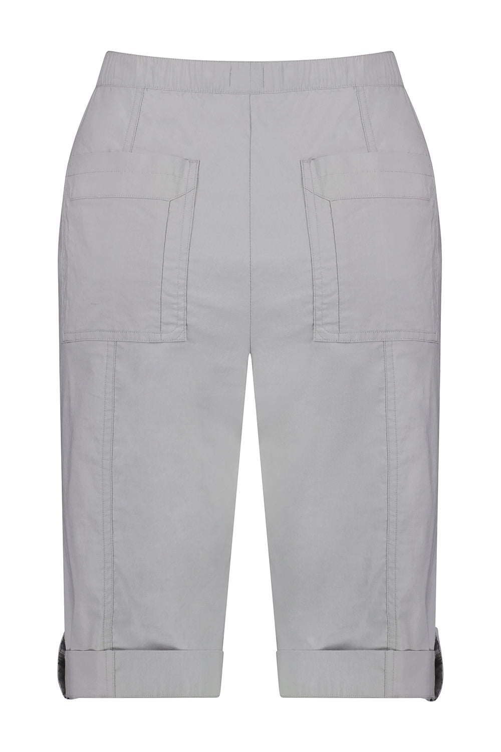 Straight leg shorts with side tabs to change the length. Features side pockets, panel detail through the leg, and elasticated waist.