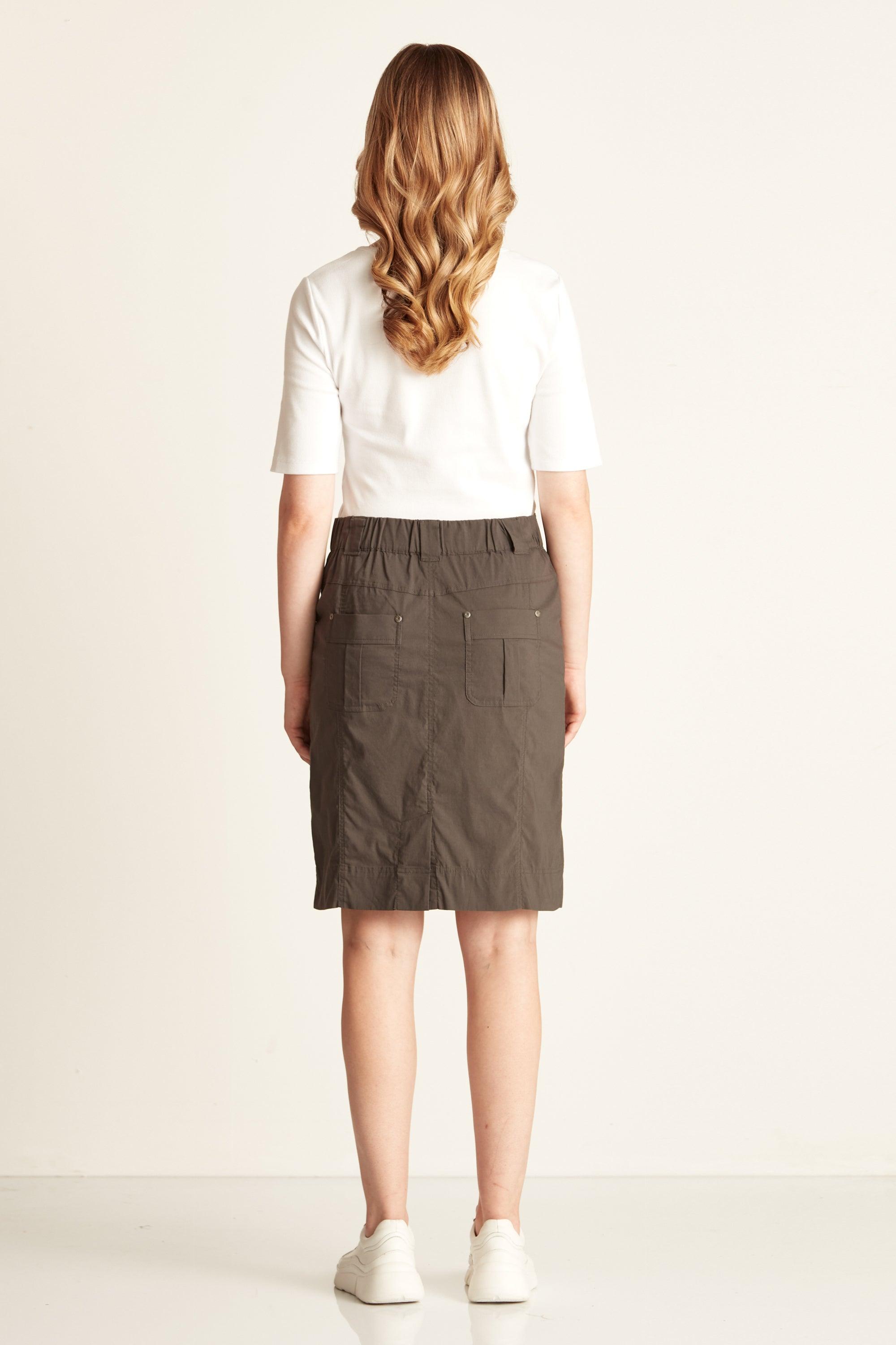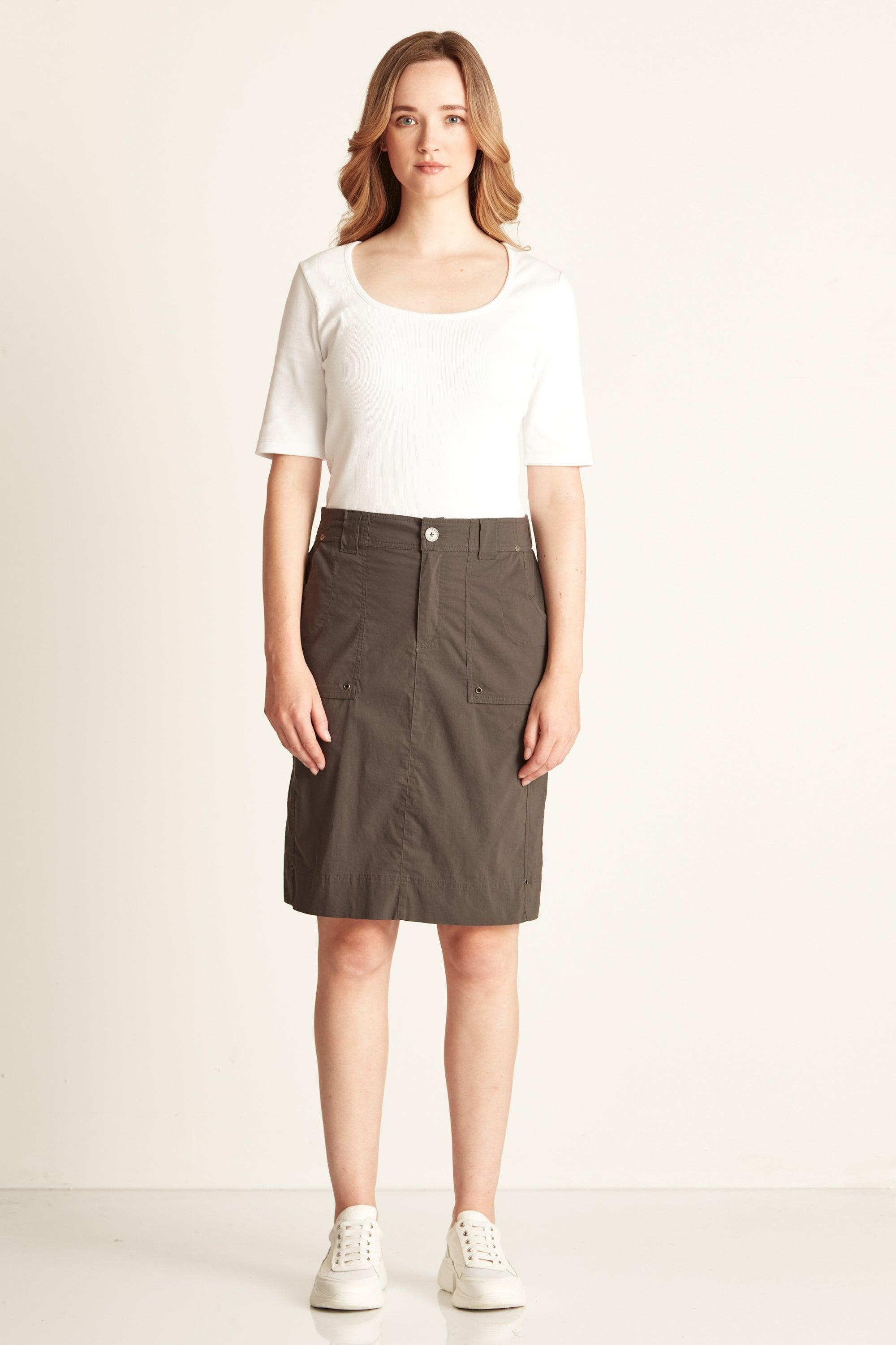 Knee-length Skirt with fly front side and back pockets. Elasticated waist through the back. Made in our exclusive European lightweight stretch cotton Acrobat fabric for comfort, breathability, and easy care.