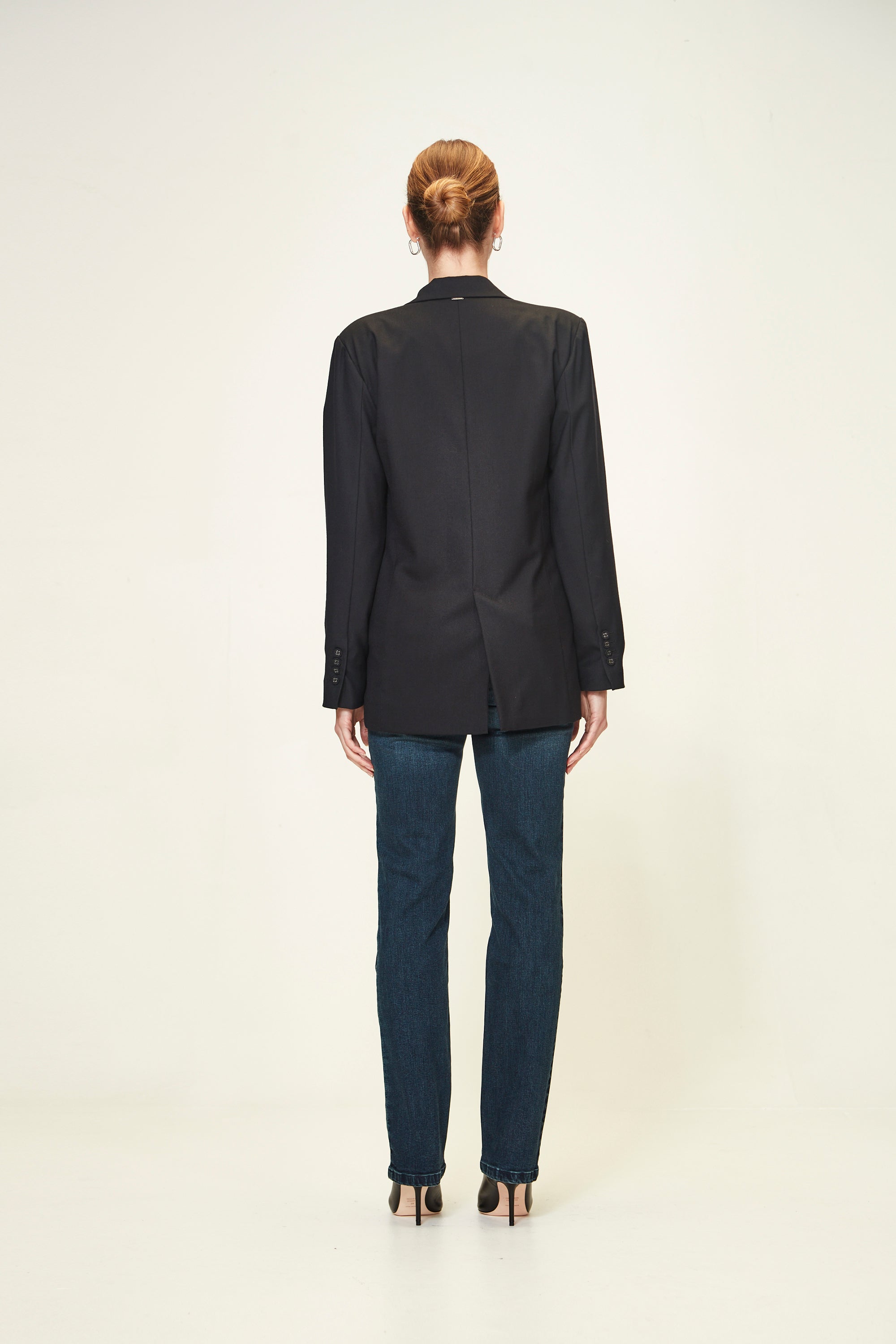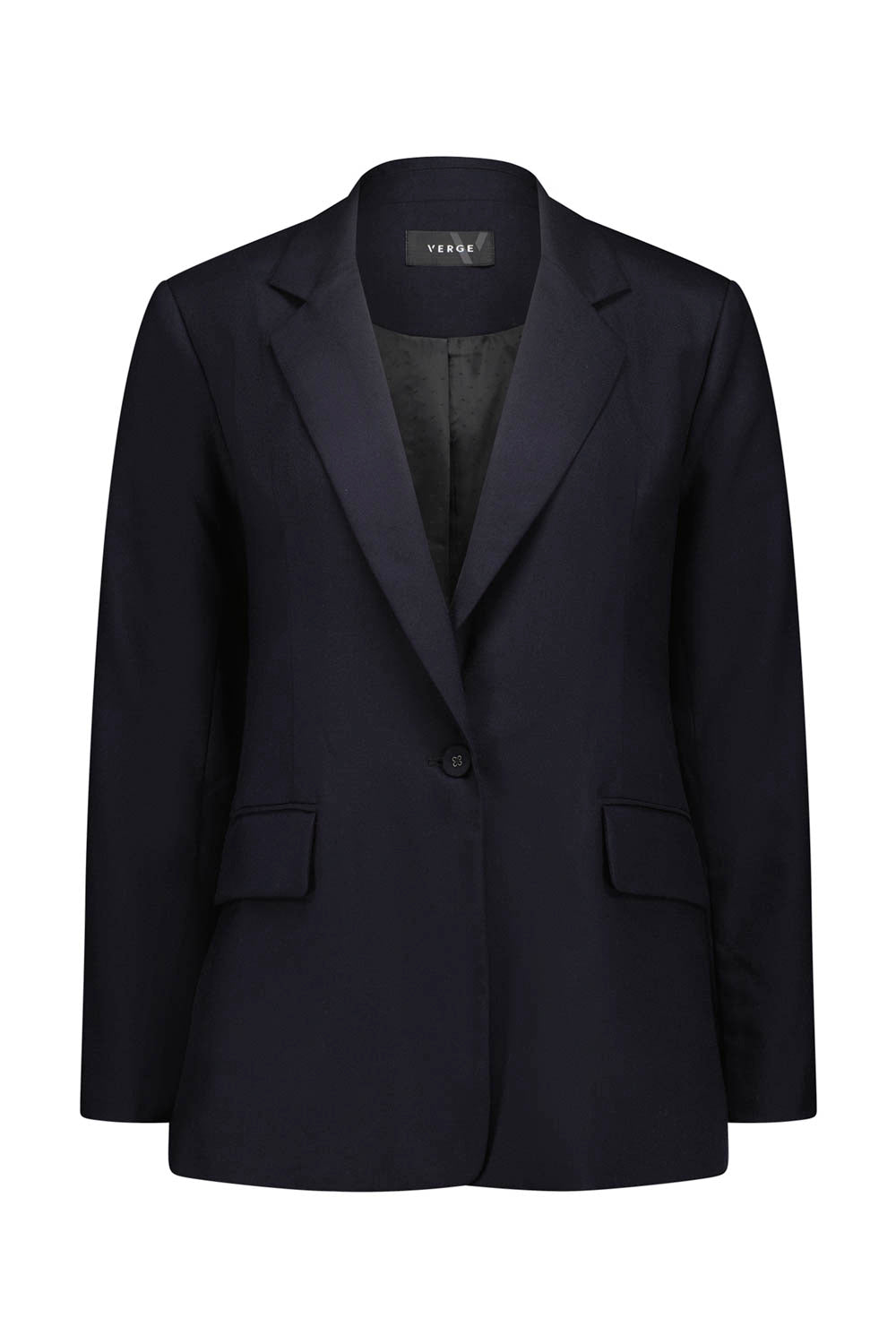 Classic Wool blend blazer with single button fastening.  Flap front pockets.  Back vent. Full-length sleeve with 4 feature-covered buttons.  The Matilda jacket is fully lined and falls to the top of the thigh.