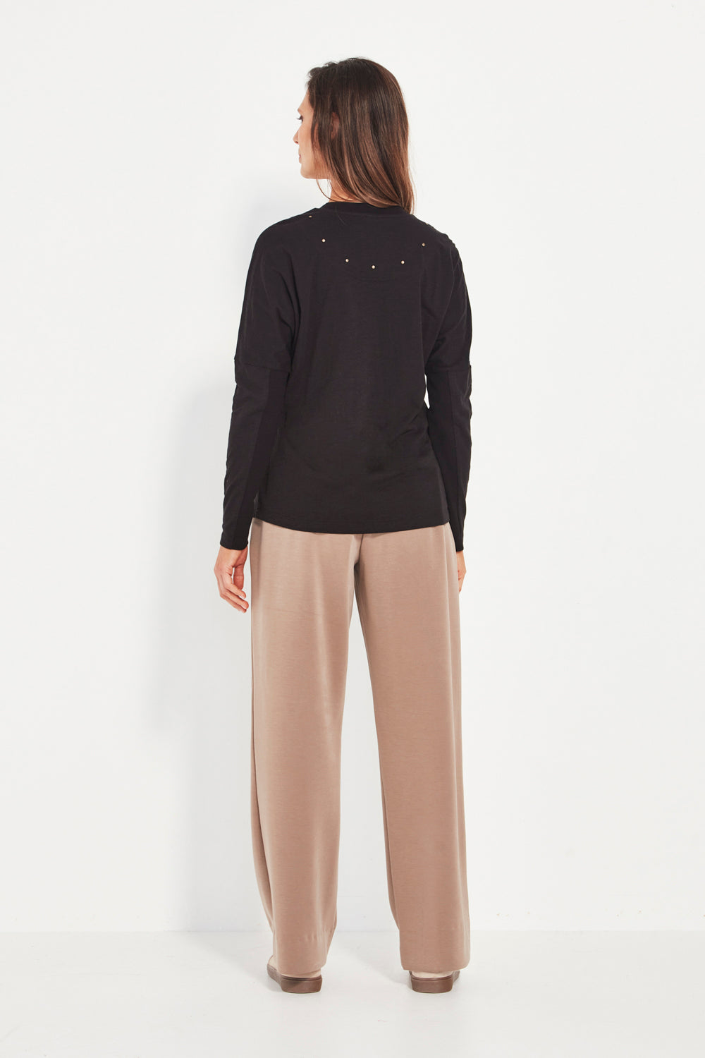 A row of domes along the back introduces a modern feature that elevates the simplicity of the shape. Versatile and comfortable, the Reckless Top pairs beautifully with denim, soft pants, or layered winter looks.