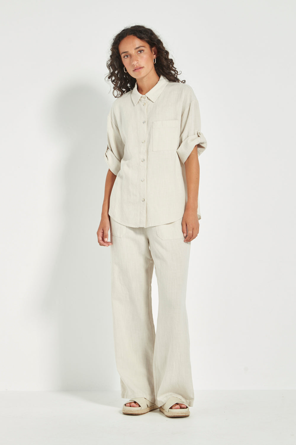 A chic, modern staple crafted in a breathable Tencel-linen blend that won’t crease easily and feels softer and more forgiving than traditional linen. With a relaxed button-through fit, patch pocket, and ¾ sleeves that roll up with tab detailing, the Vision Shirt blends polish with ease. Pair it with the matching Vision Pant for a perfectly coordinated set.