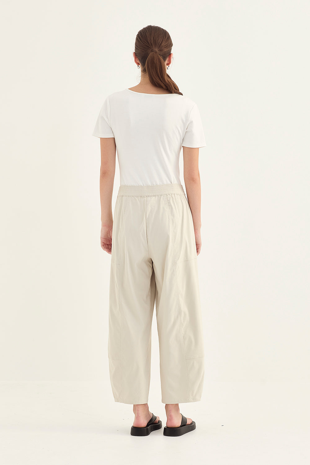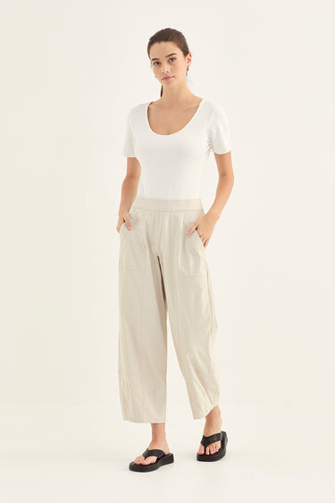 The Homeland Pant is designed with a refined, easy silhouette that blends structure with comfort. The wide-leg shape offers soft movement and a modern, elongated line. A flat front keeps the look clean and polished, while the elasticated back waistband ensures everyday comfort and an effortless fit.