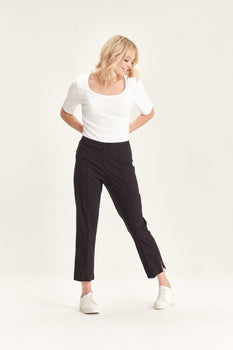 Designed with a slim leg and vertical seam detailing to elongate the silhouette, it features a concealed elasticated waistband and hemline splits for ease. Finished in a flattering 7/8 length — a versatile style that moves effortlessly from day to night.
