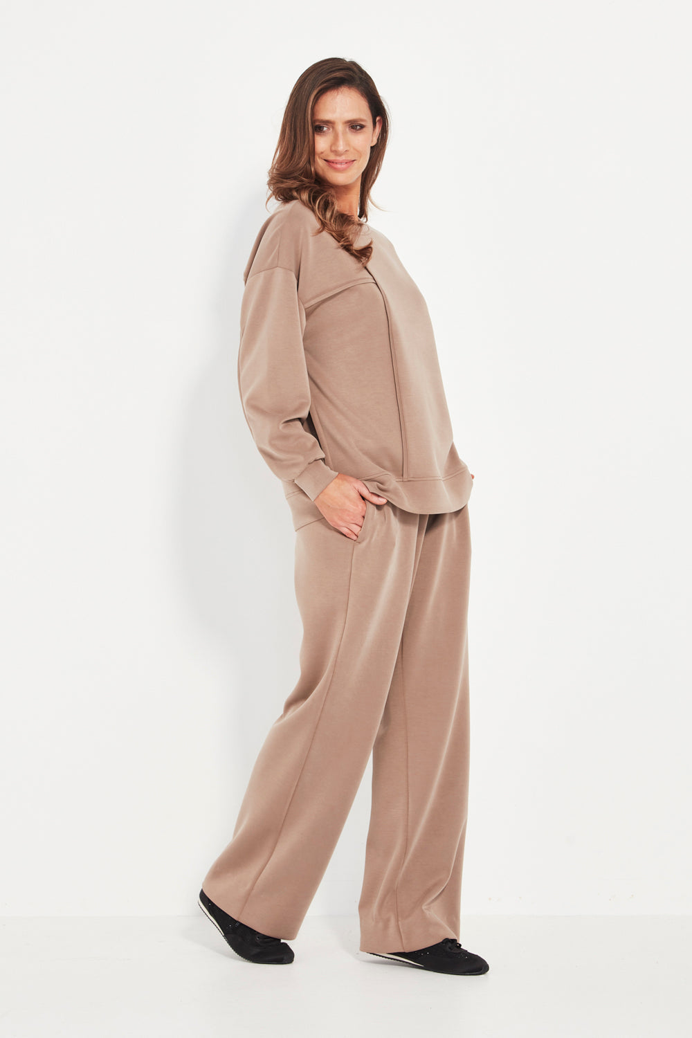 The Bexter Sweater is crafted from a buttery-soft fabric that feels luxurious against the skin while offering a smooth, elegant drape. Designed with refined paneling through the front, back, and sleeves, it brings subtle structure and modern shaping to a classic knit silhouette.
